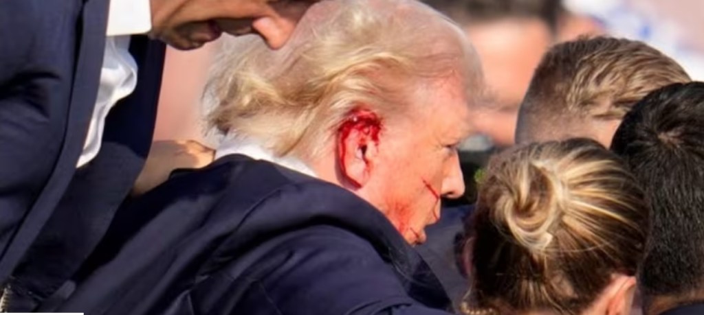 Los Agentes del Servicio Secreto lo socorrieron y pusieron de pie. El republicano alcanzó a levantar su puño con la cara ensangrentada y quedó filmado en la transmisión oficial. Fue trasladado para recibir atención médica