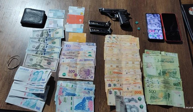 Una pistola cal. 22 con dos cargadores, cartuchos, dos celulares, una suma de dinero en moneda nacional y extranjera (dólares). Cabe destacar que, el vehículo mencionado, estaría implicado en un hecho ocurrido en el sector de Banda Norte, donde algunos sujetos habrían efectuado disparos con un arma de fuego.