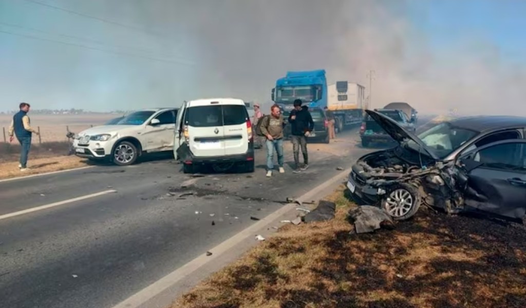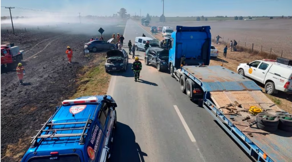 Personal de bomberos estaba combatiendo las llamas que afectaban rastrojos y malezas en el sector. Con la visibilidad reducida por el humo sucedió el choque múltiple.