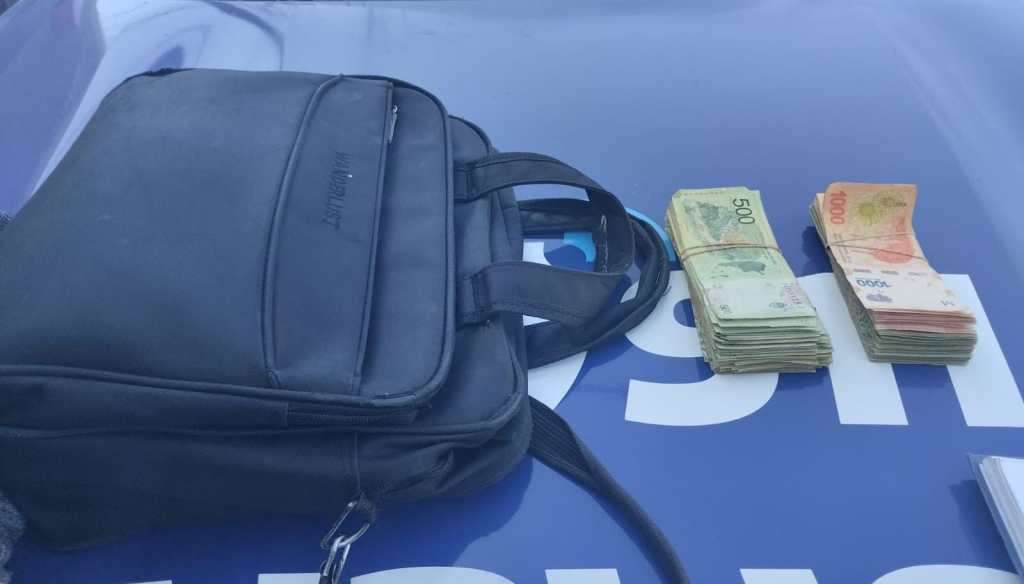 En horas del medio día, en calles *Cochabamba y David Luque de Bº Pueyrredón se procedió a la aprehensión de un hombre de 53 años quien registra antecedentes penales, junto al secuestro de un bolso con más de 100.000 pesos en efectivo.* Dicho procedimiento, se dio luego de que el propietario de una Renault Kangoo observara al hombre con el bolso que era de su propiedad. Posteriormente, el detenido junto a los elementos secuestrados fue trasladado a sede policial a disposición de la Justicia.