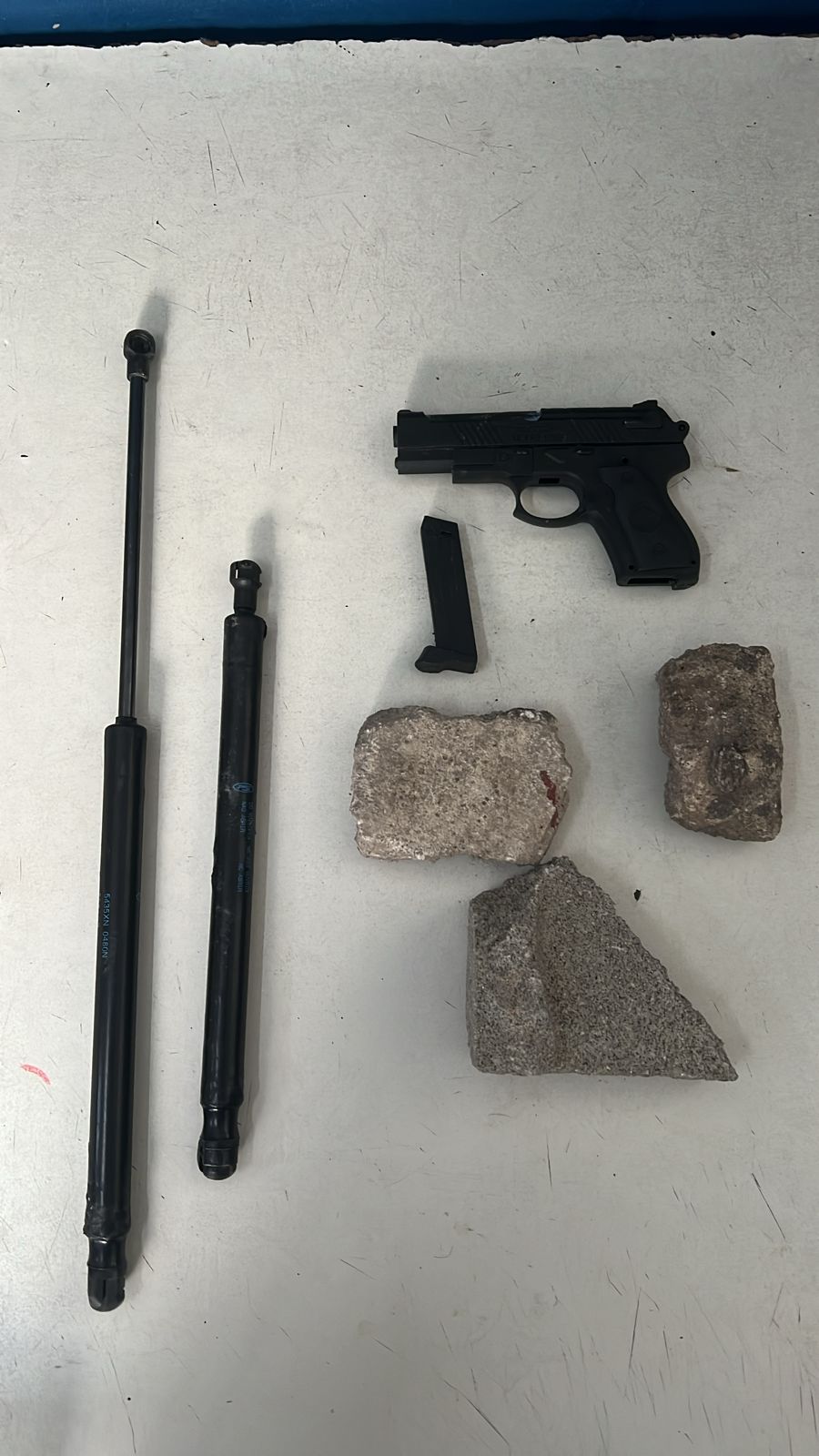 -En la víspera, *en calle Boedo al 1400 de Bº Colonia Lola, se procedió a la aprehensión de cinco adolescentes de entre 15 y 16 años de edad junto al secuestro de una réplica de arma de fuego y dos bastones extensibles de 60cm aproximadamente.* Cabe destacar, que momentos antes, personal policial entrevistó a un damnificado quien manifestó que los menores se hicieron presentes en su domicilio provocando daños en la puerta de ingreso y en los cristales de una ventana. Inmediatamente se realizó un operativo que culminó con la detención y posterior traslado de los sindicados a sede policial a disposición de la Justicia.