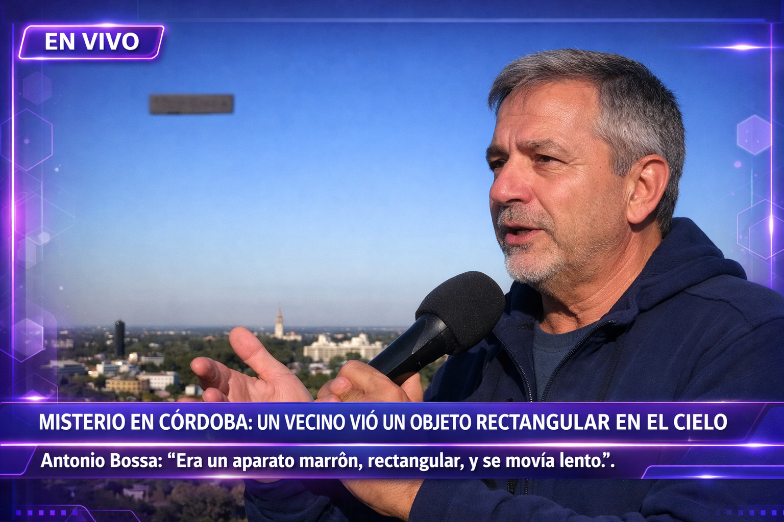 El hecho fue relatado en el programa “Buen día, Argentina”, conducido por Carolina Amoroso. Según el testimonio de Antonio Bossa, de 58 años, el episodio se registró alrededor de las 7 de la mañana, cuando salió de su vivienda y observó un objeto a gran altura desplazándose de este a oeste.